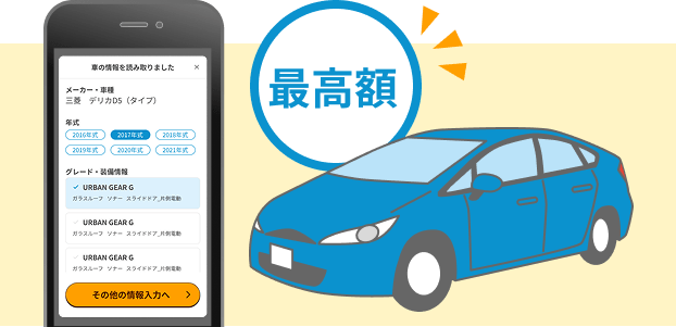 全国の買取店がWeb上であなたの愛車を査定します。買取店同士で競い合うため、高額査定が期待できます。
