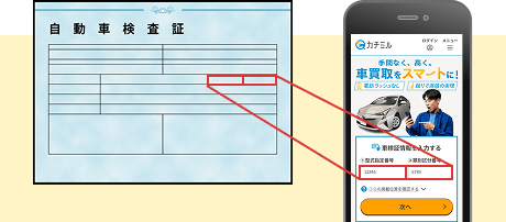 車検証をお手元にご用意いただき、愛車の情報を入力。買取店は詳細な情報を得られるので、正確な査定が可能になります。